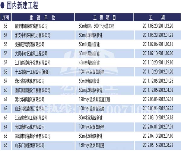 宏順建設(shè)工程有限公司是國家批準(zhǔn)成立的專業(yè)高空作業(yè)企業(yè):承攬過(國內(nèi).國外)煙囪新建、煙囪防腐、磚煙囪新建、煙囪改造、煙囪維修、煙囪脫硫防腐、煙囪拆除加高、煙囪滑膜等高空作業(yè)工程。具有“不搭腳手架 、 不需要停產(chǎn)”施工特點(diǎn)。